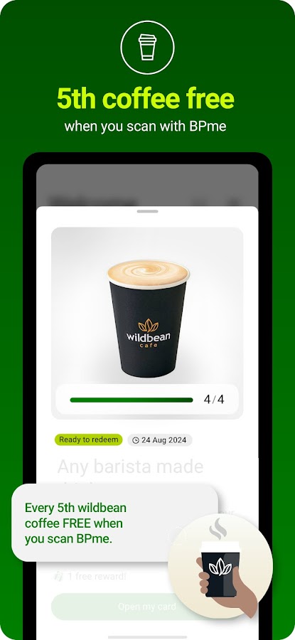 Успевайте больше на ходу с BPme. От заправки автомобиля до зарабатывания баллов в дороге и каждого 5-го бесплатного кофе в кафе Wildbean — это простое приложение.