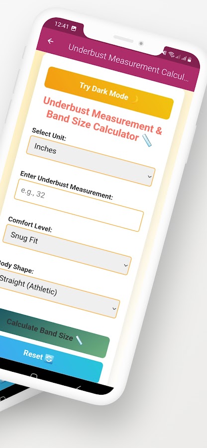 Наш калькулятор размера бюстгальтера не только функционален, но и выглядит и ощущается великолепно. Пользовательский интерфейс отличается красивым градиентным фоном и четким, профессиональным дизайном. Дизайн приложения оптимизирован для визуально привлекательного и удобного использования, будь то светлая тема с освежающим градиентом на белом фоне или тёмная тема с элегантным градиентом на чёрном фоне.