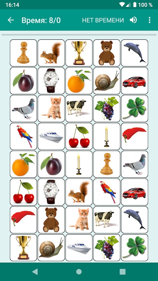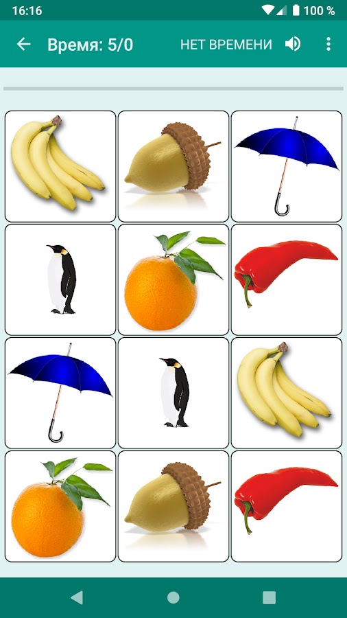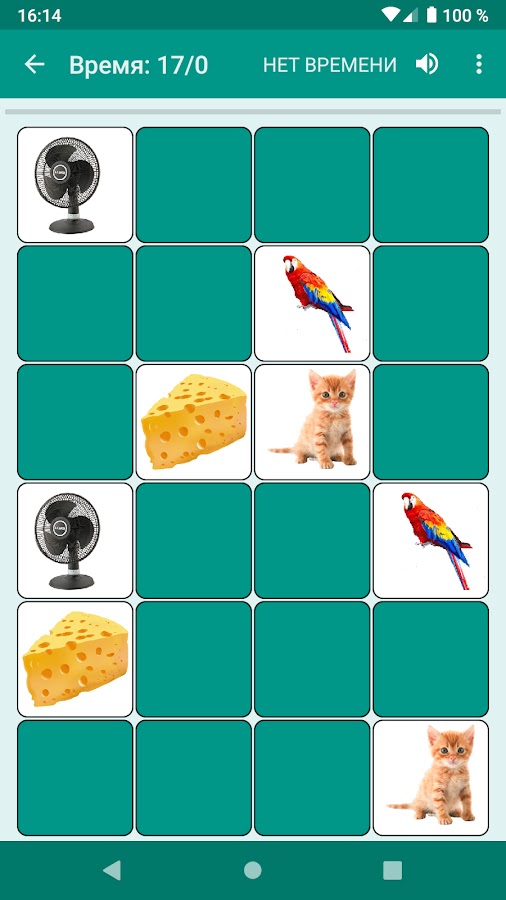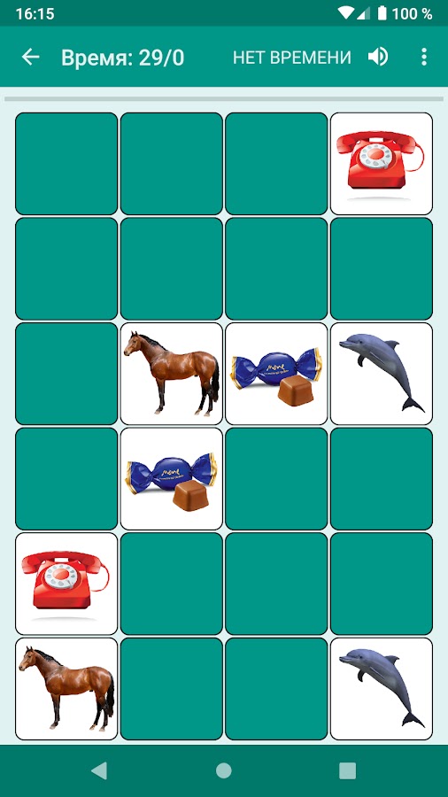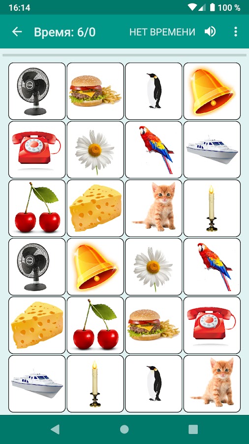 Через короткое время они скроются снова, и вам предстоит найти все пары. Но поторопитесь — время бежит, и оно играет против вас.