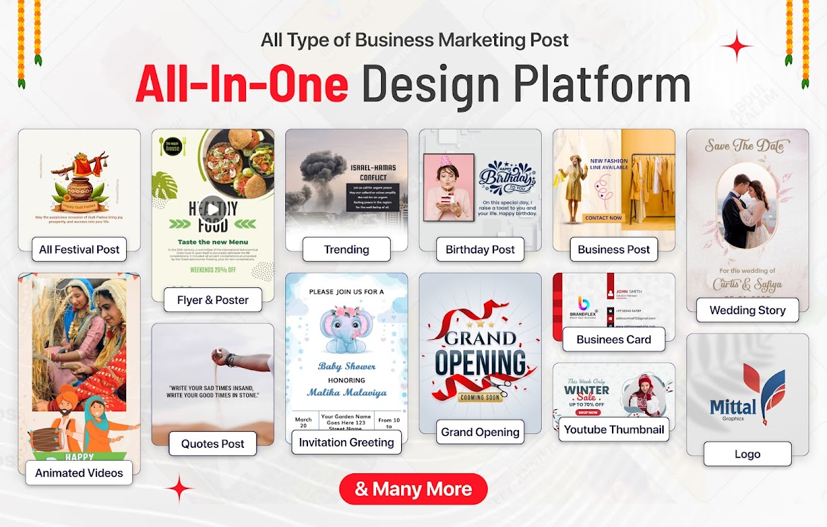 Приложение BrandFlex для создания пожеланий, плакатов, постов, ежедневных бизнес-плакатов, постов, личных постов, праздничных видео, изображений, статусов WhatsApp, постов Facebook, постов в социальных сетях, бизнес-постов, праздничных постов, праздничных плакатов. Лучшие приложения для создания плакатов в Индии.