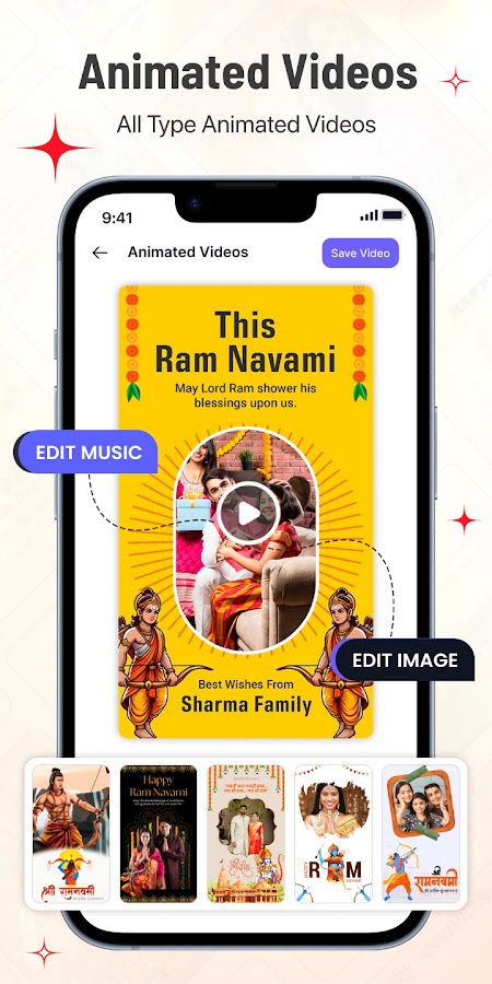 Рама Навами — индуистский фестиваль, посвященный рождению Господа Рамы. Создавайте собственные постеры с Рамом, постеры «Джай Шри Рам», фоторамки для храма Рама в Айодхье, фотографии Шри Рам Лалы, создайте постеры к Рам Навами, постеры Шри Рама Навами, баннеры к Рам Навами и видеостатусы к Рам Навами в Айодхье.