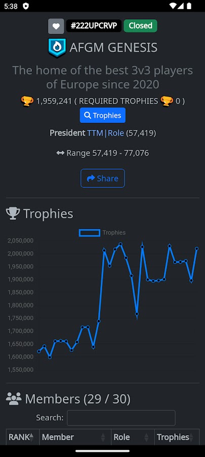— Просматривайте статистику клана и членов, состоящую из истории трофеев, журнала войны, истории пожертвований, вкладов в рейд капитала клана.