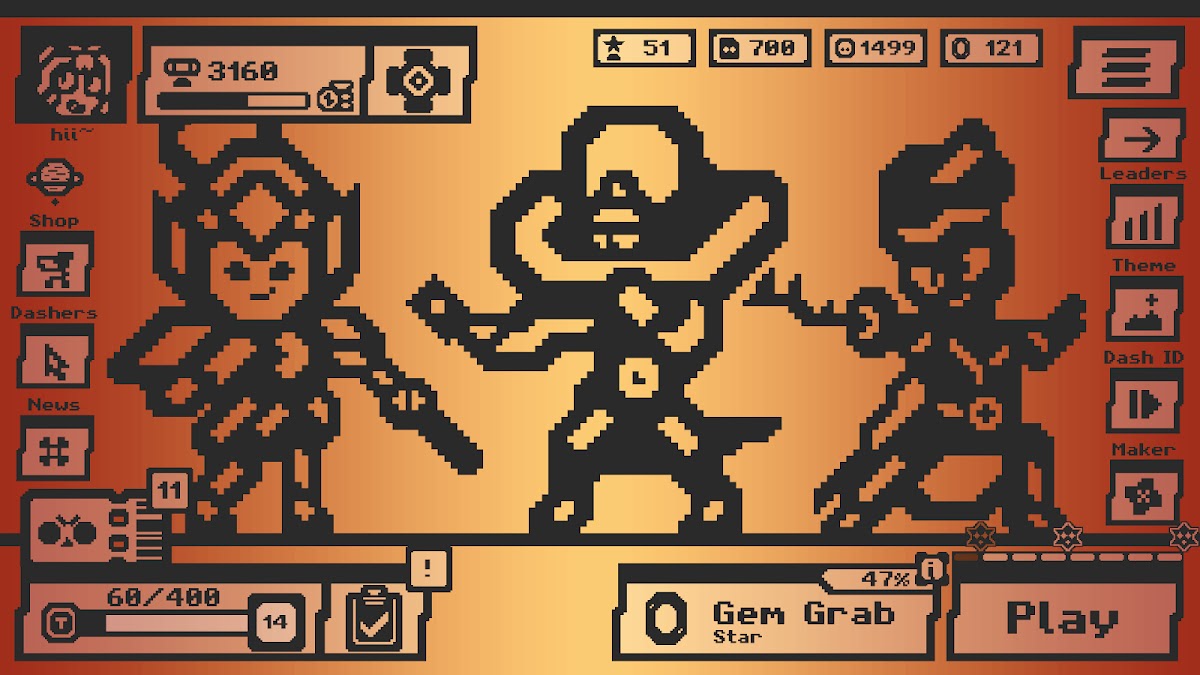 Это Brawl Dash. Здесь вы одни и можете делать всё, что хотите. Думаю. В любом случае, единственный плохой рандом — это вы. Все оригинальные механики применены к бравлерам и картам, включая некоторые ремиксы для бравлов. Только постарайтесь не умереть. Вдохновлено Brawl Stars и Geometry Dash.