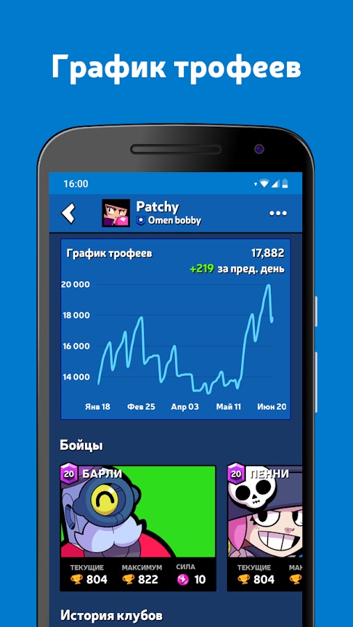 — Следите за вашей статистикой, включая трофеи, победы, поражения и т. д.