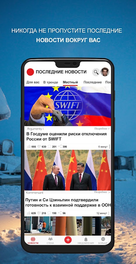 Получайте оповещения о последних новостях, а также горячие заголовки и ежедневные статьи о событиях рядом с вами.