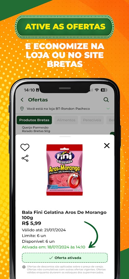 Наслаждайтесь этим супер преимуществом Bretas и получите незабываемые впечатления в наших магазинах.