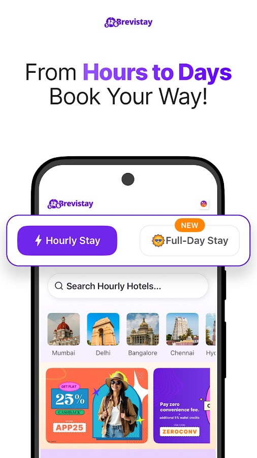 Откройте для себя онлайн-предложения отелей для краткосрочного пребывания, загрузив приложение Brevistay с почасовой оплатой номеров уже сегодня!