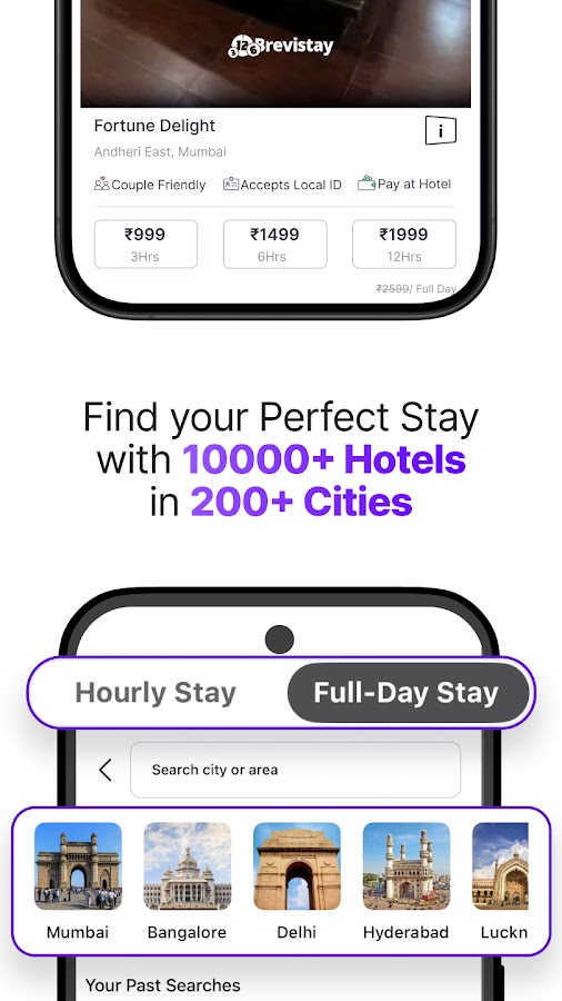 В настоящее время вы можете забронировать отель со скидкой в более чем 100 городах Индии через наше приложение для бронирования отелей. Мы работаем во всех крупных городах Индии, таких как Ахмадабад, Бангалор, Ченнаи, Дели, Хайдарабад, Джайпур, Калькутта, Мумбаи и многих других городах второго и третьего уровня. Brevistay работает над добавлением большего количества городов в почасовой радар гостиничных номеров Brevistay, чтобы вы могли планировать свое короткое пребывание в любимых отелях.