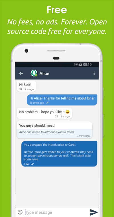 В приложении нет рекламы и отслеживания. Его исходный код полностью открыт для всех и уже прошел профессиональный аудит. Все релизы Briar воспроизводимы, что позволяет убедиться в том, что опубликованный исходный код в точности соответствует опубликованному здесь приложению. Разработкой занимается небольшая некоммерческая команда.