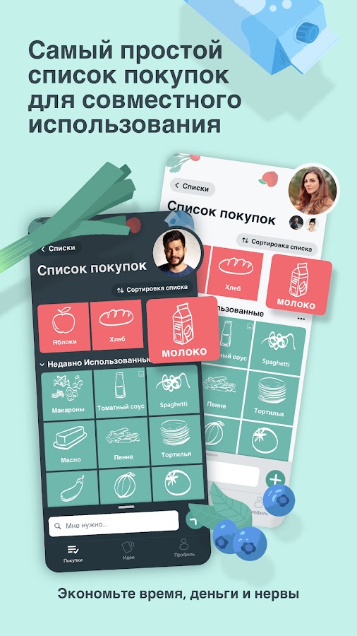 📝 Делитесь списками покупок с родственниками, знакомыми и соседями.