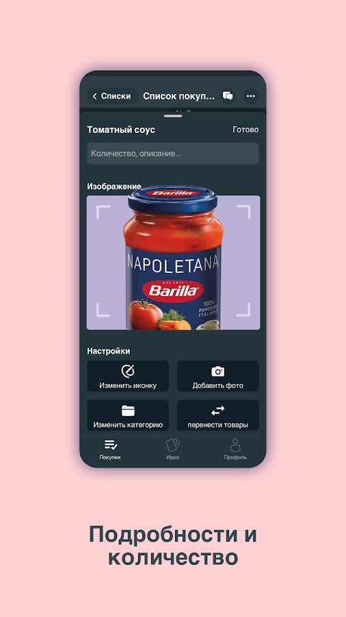 💡 Пользуйтесь подходящими рекомендациями товаров из своего списка покупок. Нужно купить спагетти? Не забудьте томатный соус!