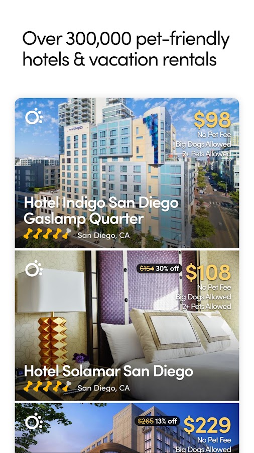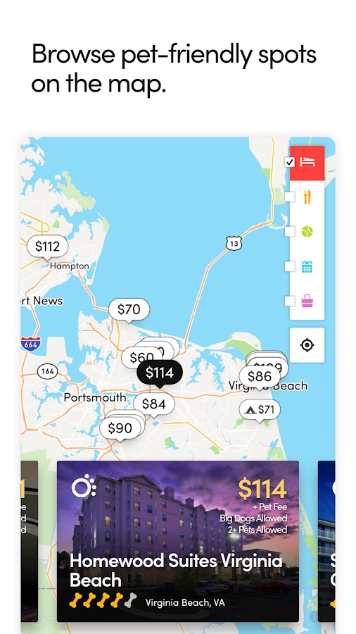 Наше новое приложение делает бронирование отеля, в котором разрешено размещение с домашними животными, проще, чем когда-либо. Ищите отели рядом с вами и сортируйте по расстоянию, популярности, рейтингу и цене. Путешествуете с большой собакой или несколькими домашними животными? Воспользуйтесь нашими фильтрами, чтобы найти отели, в которых возможно размещение с большими собаками и несколькими домашними животными. Вы даже можете сузить результаты, чтобы просмотреть отели, которые не взимают плату за размещение с домашними животными! Благодаря гарантии BringFido Pet Friendly Guarantee наши клиенты могут быть уверены, что найдут лучшие доступные места для размещения с домашними животными. Получите мгновенное подтверждение бронирования, а если у вас есть вопросы, вы всегда можете позвонить или написать по электронной почте нашей команде экспертов по путешествиям с домашними животными.