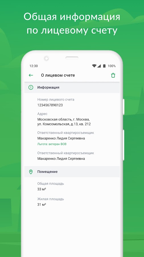 — Просмотр общей информации по лицевому счету;