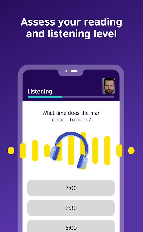 — Также доступен тест на знание английского языка, чтобы оценить ваше произношение, беглость речи и коммуникативные навыки.
