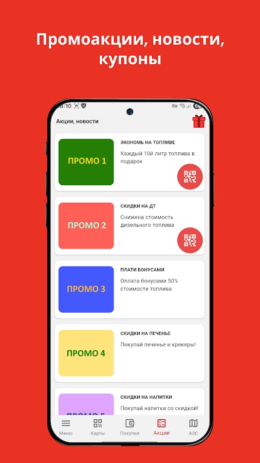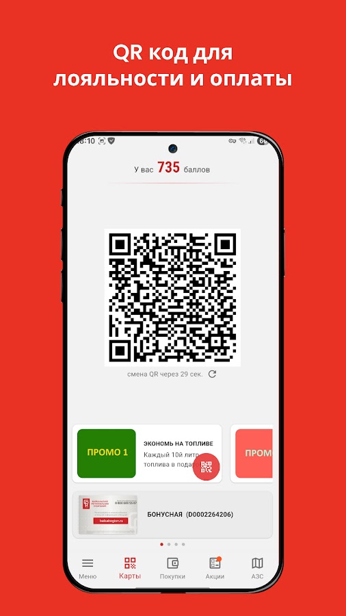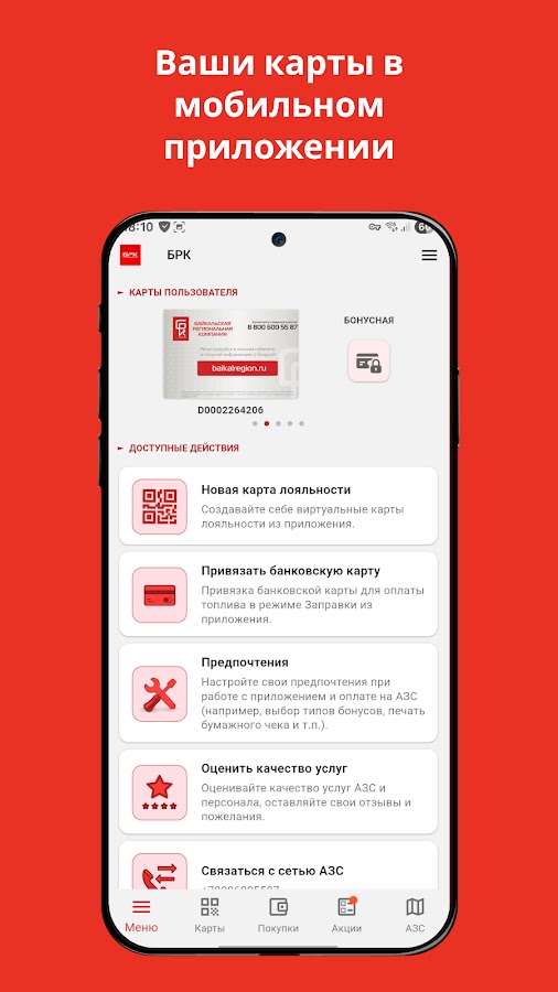 • Ваши бонусные, дисконтные и топливные карты сети АЗС БРК в Вашем смартфоне
