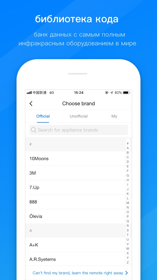 Мы владеем самой большой в мире базой данных IR с поддержкой 10 Вт + пультов и 3751 брендом бытовой техники. Вы можете выбрать либо наши официальные параметры ИК, которые были проверены вручную на предмет доказанной надежности, либо общие параметры ИК, предоставленные нашими пользователями в течение многих лет, которые могут подойти для не популярных моделей.