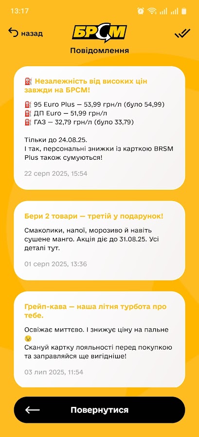 • Постоянно быть в курсе акций и новинок в Национальной сети АЗК «БРСМ-Нефть».