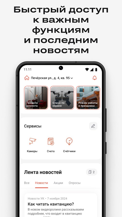 • быть в курсе новостей дома (плановые работы, отчёты, события, голосования);