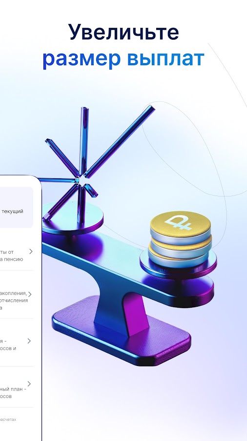 Достаточно скачать приложение, и вы увидите свои пенсионные накопления. В зависимости от вашего профиля и продуктов, которые предлагают НПФ, получите полезные советы по программам. Для быстрого и безопасного подписания документов в приложении используйте сервис Госключ.