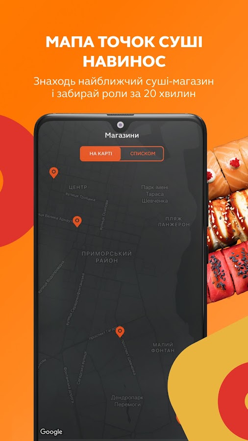 Сеть фирменных магазинов BuduSushi дает возможность заказать суши в Одессе, Киеве, Николаеве, Черноморске, Гостомеле и Василькове буквально в несколько кликов. В приложении можно выбрать свой город, ознакомиться с ближайшими локациями суши-магазинов, просмотреть их график работы. Возможно, именно рядом с тобой находится точка круглосуточного самовывоза суши!