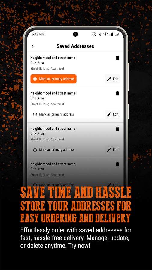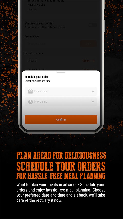 2. Выберите предпочитаемый язык (арабский – английский) 3. Выберите место и укажите адрес доставки 4. Отметьте свои любимые блюда в нашем меню