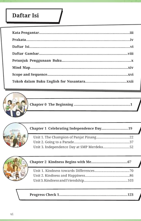 Чтобы помочь вам приобрести навыки английского языка, в учебнике «Английский для Нусантары» используется жанровый подход в сочетании с процессом изучения первого языка и дополнительных языков, который переходит от навыков устной речи к письменной речи. Языковые навыки, которым уделяется внимание в этой книге, включают аудирование, говорение, чтение, просмотр, письмо и представление, которые комплексно представлены в различных типах текста. Материальное содержание этой книги было разработано на основе результатов обучения, содержащихся в учебной программе Мердека, с уделением внимания взаимосвязям каждого уровня.