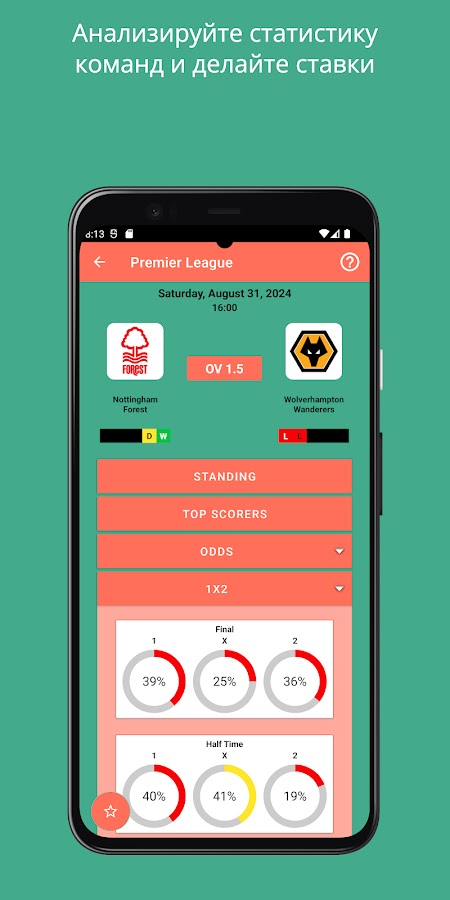 — Всестороннее покрытие: от Премьер-лиги до Ла Лиги, Серии А до MLS, доступ к прогнозам и статистике для более чем 500 лиг по всему миру.