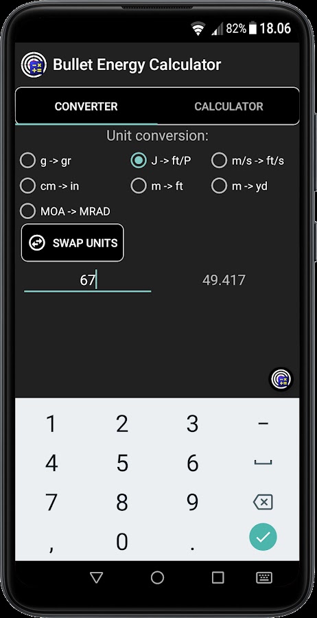 Калькулятор энергии пули и конвертер единиц для оружия.