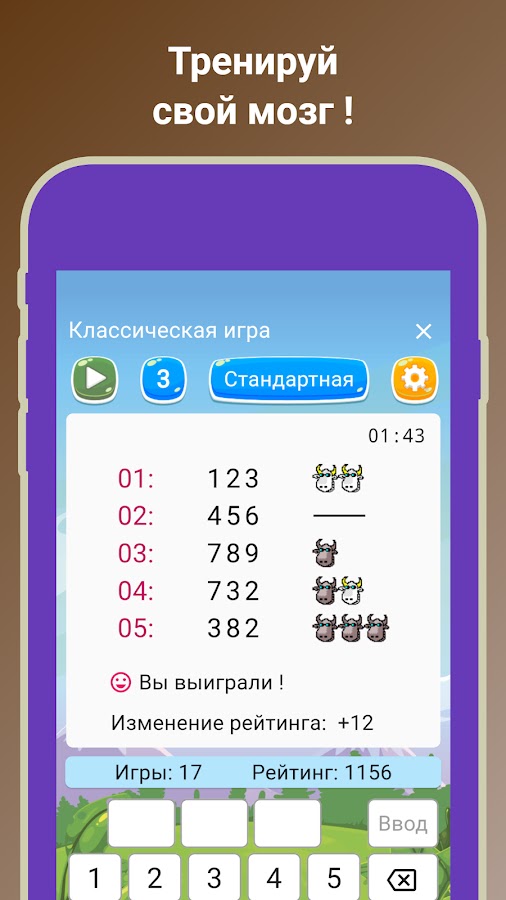 Скачайте игру Быки и коровы — Mastermind для Android бесплатно - последняя версия (5.2.14) уже доступна для установки на ваш телефон или планшет.