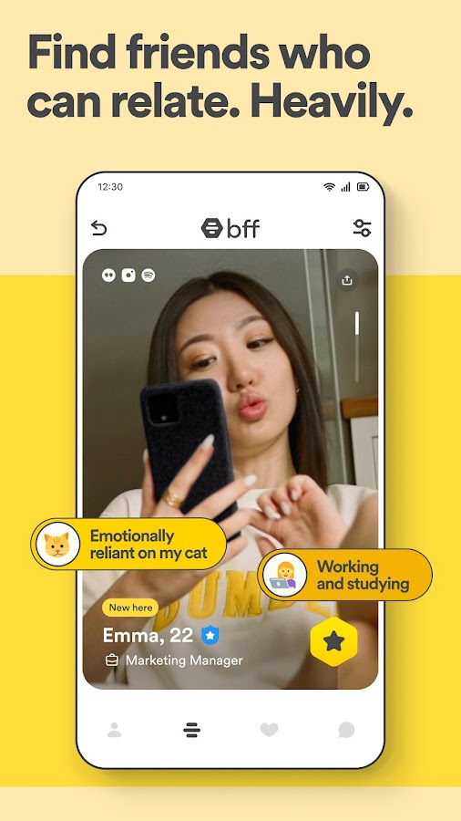 Если вам нравится режим BFF в приложении Bumble, то Bumble For Friends для вас! Bumble For Friends — это приложение, в котором люди на всех этапах жизни могут намеренно заводить новых друзей и создавать значимые дружеские отношения. Bumble For Friends — это не просто приложение, которое предоставляет простые способы помочь людям общаться и подружиться с людьми поблизости, это также приложение, которое расставляет приоритеты: