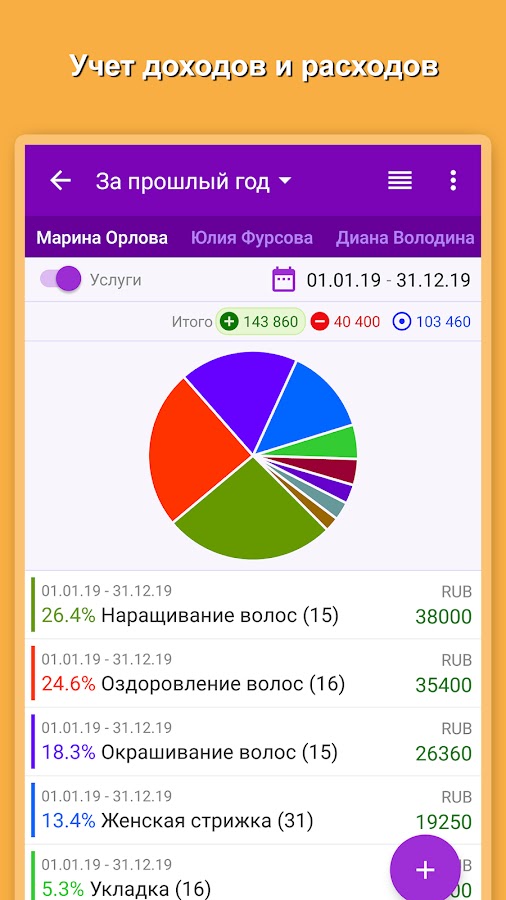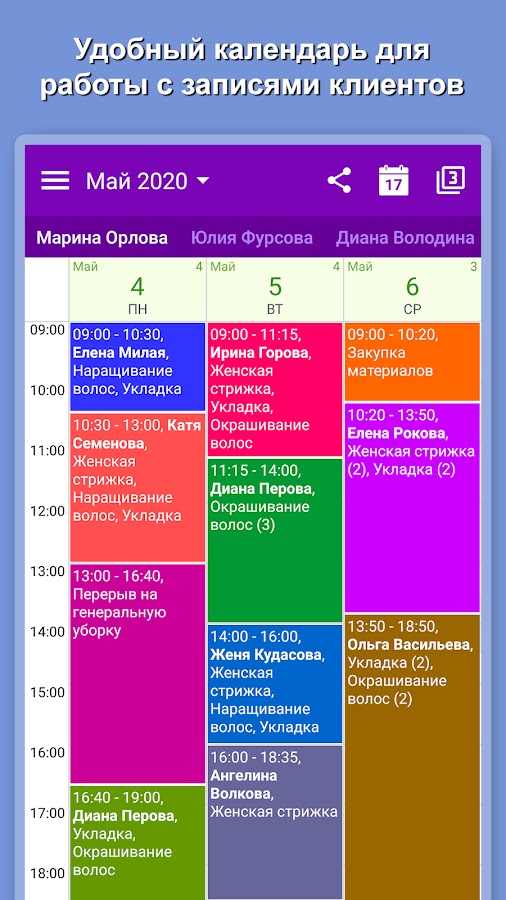 — Имеет удобный интерфейс для работы нескольких мастеров в приложении.