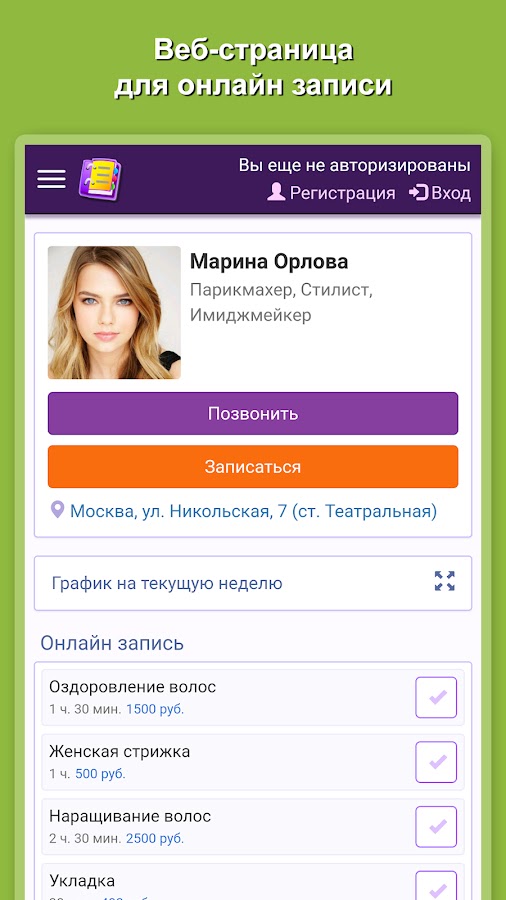 — Предоставляет персональную страницу для онлайн записи клиентов.