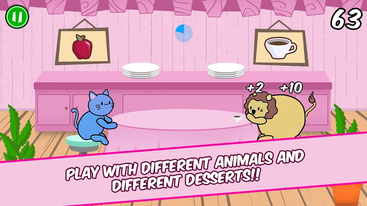 Но будьте осторожны, power ups иногда выглядят как милая еда, которую вы отбрасываете, если вы не обращаете внимания: у бонусов есть оранжевое свечение вокруг них, поэтому всякий раз, когда вы милые пушистые животные получаете эту пищу, подумайте быстро и не колеблясь, кормите их сила! Чтобы все было проще, в главном меню есть панель, напоминающая все возможные десерты, которые будут стимулировать ваших животных! Это: сдобы, красный бархат и пончик !! Так каваи!