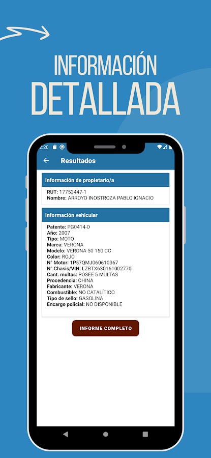 Search Patents Чили — это чилийское приложение, которое предоставляет справочную информацию об автомобиле и мотоциклах посредством патента. Эта информация имеет открытый исходный код и в основном предназначена для ознакомления с техническими деталями, такими как двигатель, VIN, цвет и другие.