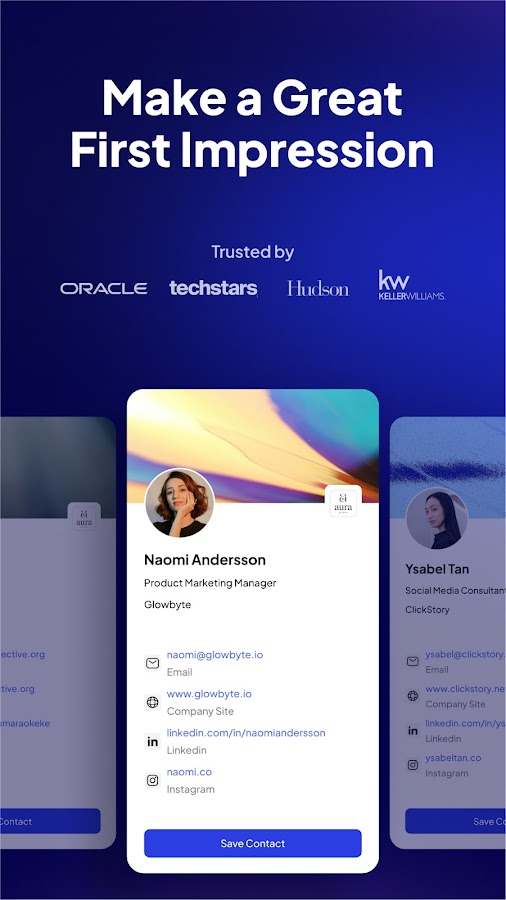• Цифровые бизнес-карточки: создавайте, настраивайте и делитесь цифровыми бизнес-карточками, которые оставят впечатление.