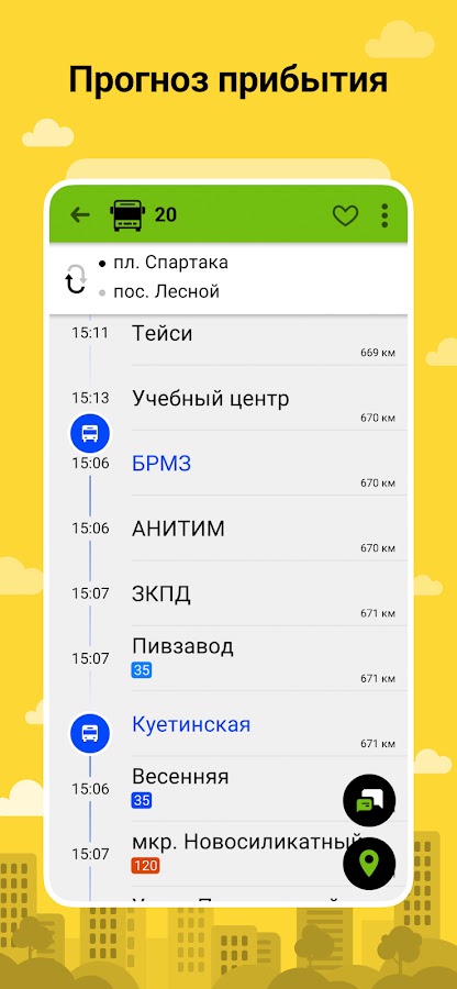 Официальное приложение сайта Busti.me обновляет данные о маршрутах каждую минуту благодаря датчикам GPS/ГЛОНАСС в каждом транспортном средстве.
