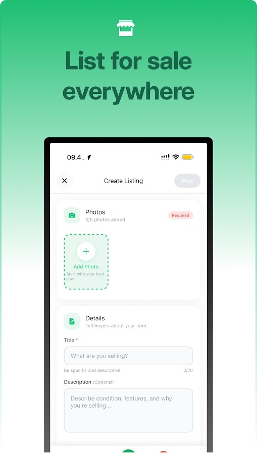 Создавайте объявления с фотографиями и описаниями всего за несколько касаний. Находите реальных покупателей рядом с вами без сложных шагов.