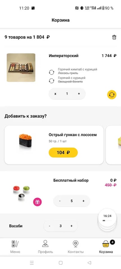 В корзине теперь можно выбрать количество сервировки — бесплатных товаров и приборов;