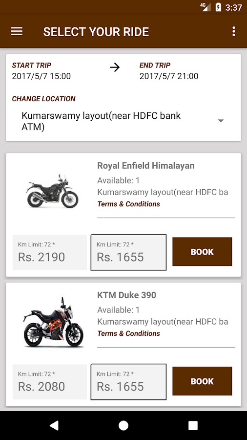 Если вы хотите, чтобы вновь пережить свои дни романтики на юбилей, аренда Harley и ударил по улицам Бангалора. Если вы хотите, чтобы расслабиться после ваших экзаменов более, арендовать велосипед своей мечты и бросаться на песчаные пляжи Гоа. Если ваша работа утомлять вас до смерти, нанять Royal Enfield гималайский и направиться в спокойные горы, чтобы найти внутренний мир. Если вы опаздываете на фильм и хотите побить трафик, снять Activa и сэкономить ваше драгоценное время. Вы не должны купить мотоцикл и застрять с ним. Аренда против покупки дебаты о прошлом. Прокат велосипедов в таких городах, как Бангалор будет определять будущее коммутируют в последующие годы. Молодое поколение не безмятежное; это всегда на ходу. Аренда двухколесных транспортных средств, когда и где нужно решить один из самых больших несчастий в транспортном секторе сегодня, страдает от загрязнения окружающей среды и дорожного движения. Bykemania гораздо больше, чем прокат велосипедов компании. Наша компания ценит обслуживание клиентов как инвестиции в будущее. Для обеспечения безопасности клиентов, мы предоставляем бесплатные шлемы как наездник и заднем сиденье. В отличие от других производителей, мы не заставляем клиентов заказывать в течение полного рабочего дня по выходным. Вы даже можете арендовать роскошный велосипед в течение нескольких часов, если ее наличие в нужное время. Наш курс позволяет привлекательные ставки для ежечасно, 12 часов, полный рабочий день, еженедельно или ежемесячно заказов. Вы можете воспользоваться скидкой ДО 20%, если вы бронируете велосипед в течение недели. Для ежемесячных заказов, скидка может достигать 60% для избранных моделей. Мы предлагаем совершенно новый флот и следовать строгим календарем обслуживания для наших велосипедов, чтобы убедиться, что вы ездите остается гладкой и без проблем. Однако, в худшем случае, мы также предлагаем помощь на сторону дороги в случае, если лицо каких-либо серьезные сбои в транспортировке. Для дальнейшего нашего антя в обслуживании клиентов, мы открыли полноценные филиалы в 3-х местах, арендовать велосипед в Бангалоре и планируем добавить еще много, как год прогрессирует. Ветви расположены в Кумарасвами макете и Бел-роуд (около Рамайяха), в то время как места пикап / капли доступны в Koramangala. Излишне говорить, что мы черпаем наше счастье, создавая счастье в жизни наших клиентов. Поэтому, пожалуйста, поделитесь своими запоминающиеся моменты в фотографиях и отзывы на www.facebook.com/bykemania. Мы стремимся быть самой клиентоориентированной два Уилер компании по прокату на земле и с любовью и поддержкой, мы уверены, что мы будем достигать этого подвига и сохранить его на долгие годы. Кроме того, мы в ближайшее время планируем запустить электрические мотоциклы, как только их производительность достигает удовлетворительный уровень.