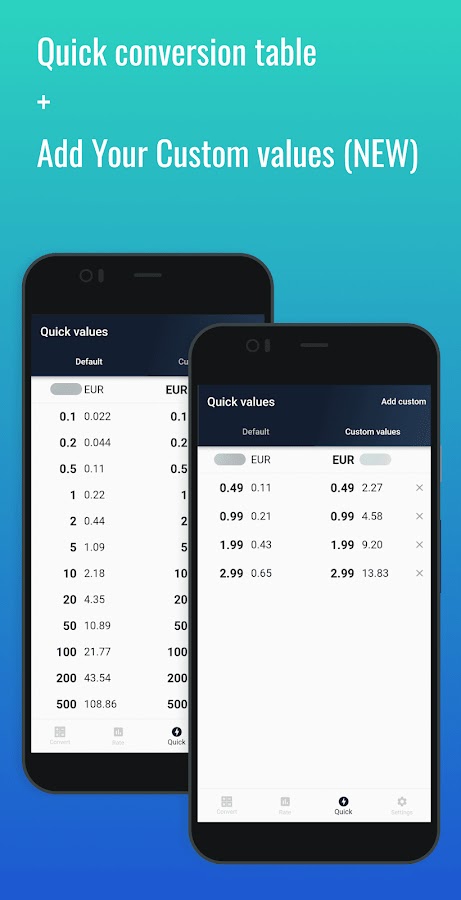‣ Быстрая Таблица Конвертации — для быстрой справочной конвертации валют Турецкая лира (TRY) курсов или добавьте свою собственную (НОВЫЙ)