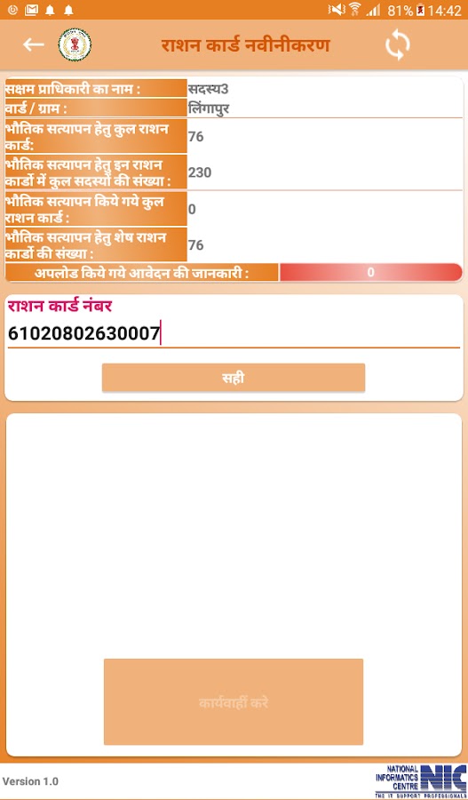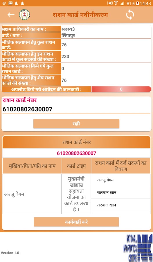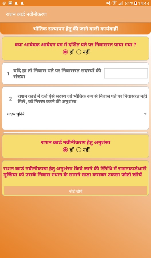 Это приложение разработано для физической проверки Бенефициаров карты Чхаттисгарх Рацион. Он будет использоваться только специалистами по проверке Ration Card. Чтобы использовать это приложение пользователь должен быть зарегистрирован в качестве сотрудника по проверке Ration карты. После успешной аутентификации приложение предоставит набор вопросов для проверки бенефициара.