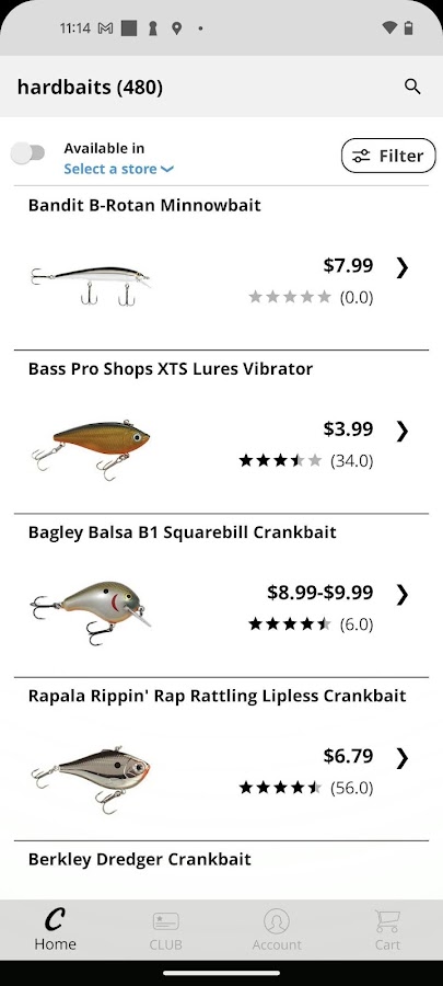 Приложение электронной коммерции нового Cabela! Теперь у вас есть возможность делать покупки из 1000 лучших товаров для активного отдыха, делать покупки в магазине, проверять свои очки CLUB, обменивать очки CLUB на транзакции в нашем ресторане / курортах и многое другое!
