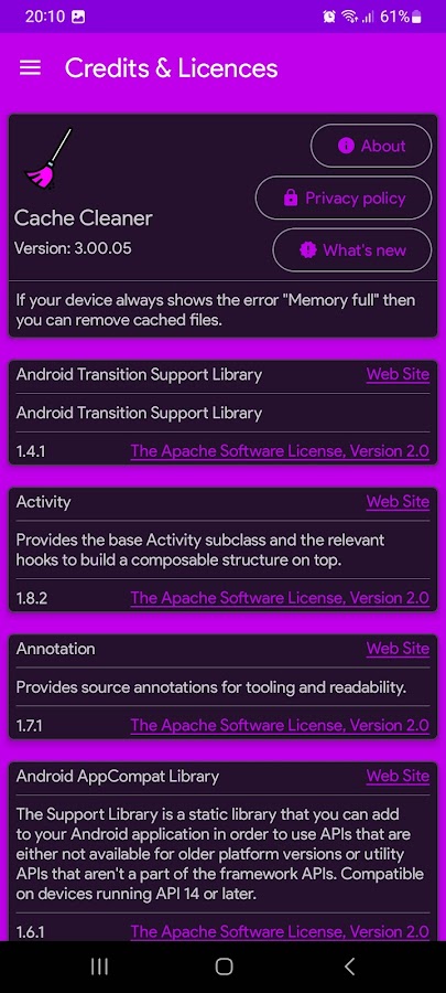 Информация о Cache Cleaner