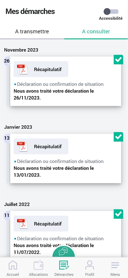 В одном разделе найдите свои обмены с вашим Caf (письма, электронные письма, заявления, встречи и т. д.) и будьте предупреждены в случае появления новых сообщений.