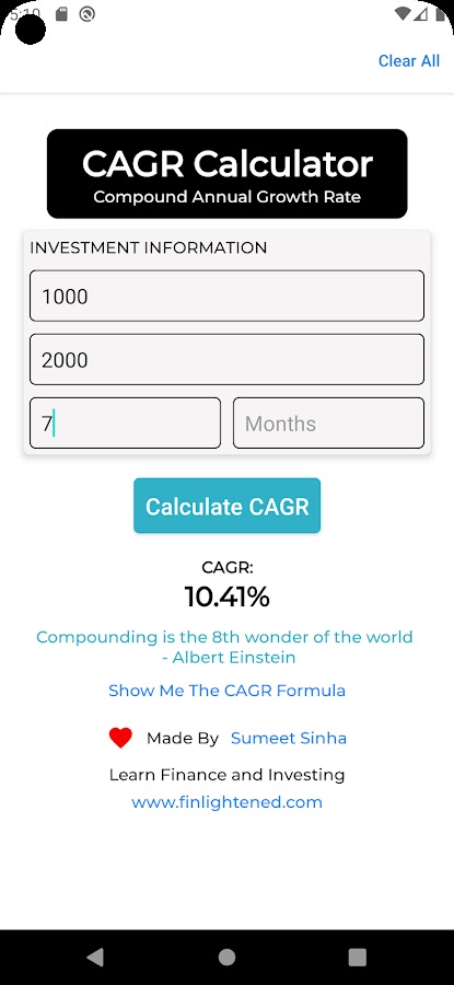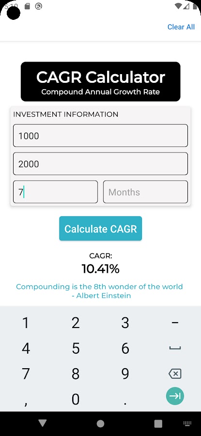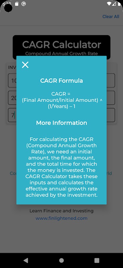 Скачайте приложение CAGR Calculator для Android бесплатно - последняя версия (1.2) уже доступна для установки на ваш телефон или планшет.