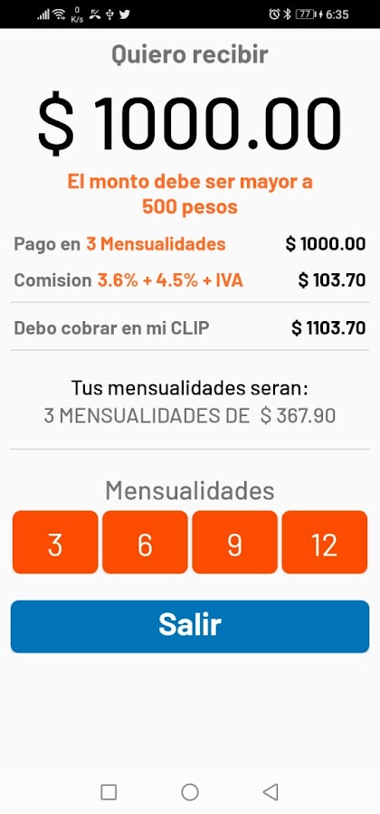 При продажах на сумму более 500 песо предложите своим клиентам платежные системы с ежемесячными платежами 3,6,9 или 12.