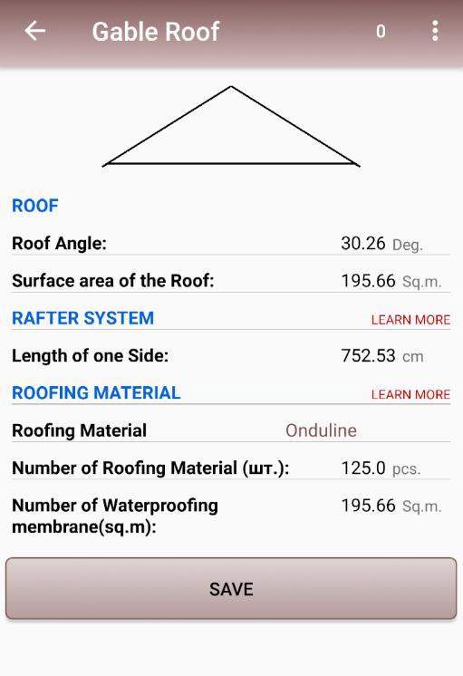 Функционал программы рассчитан на четыре типа кровли: односкатную, двускатную, мансардную и вальмовую, в процессе будут добавлены и другие виды крыш. По надобности будет добавляться вся необходимая информация