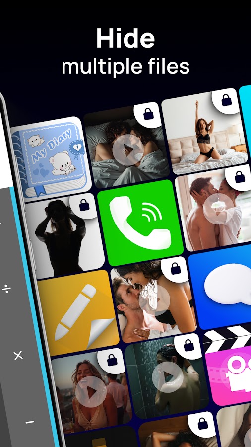 Скрыть фотографии и видео приложение с помощью значка приложения калькулятор и сохранить вашу частную жизнь в безопасности. Вы можете импортировать свои личные изображения, видео, аудио и файлы в это безопасное хранилище, и никто не знает о его существовании, кроме вас.
