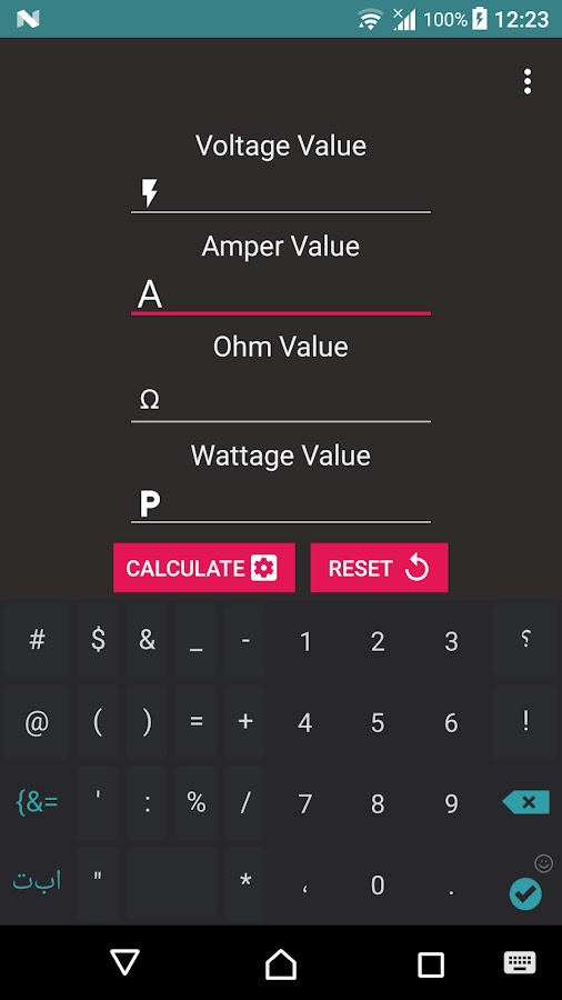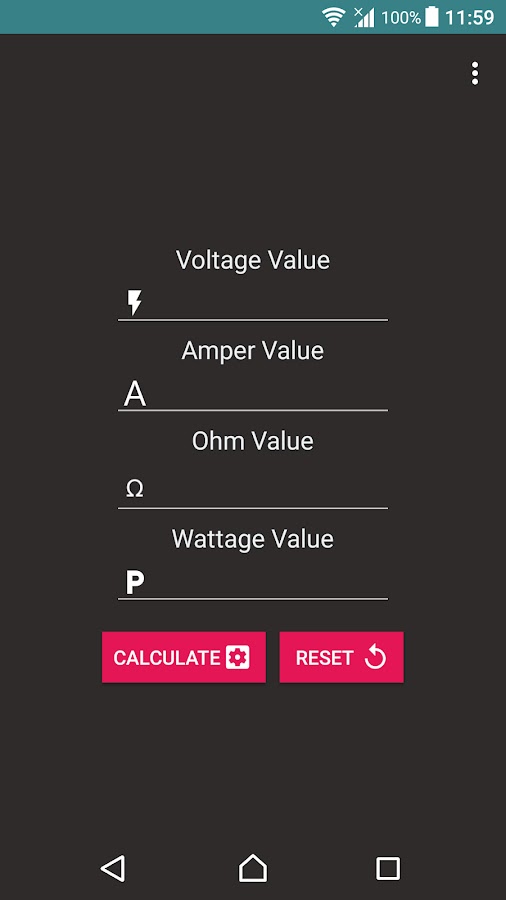 Простое приложение для расчета мощности Value (напряжение, Ватт, Ампер, Ом) Просто положи