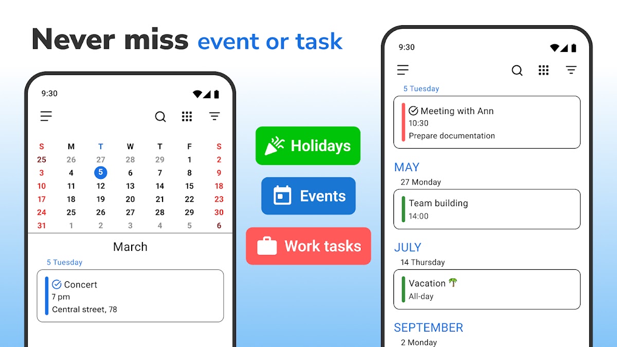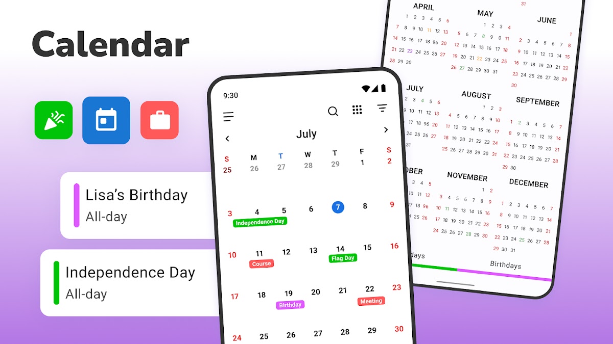 📅 Лучший календарный виджет – доступ к виджету календаря прямо на главном экране.